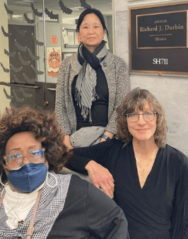 Yvonne (left) pictured after Hill Visit to Sen. Dick Durbin’s office in October with chapter member Gloria Liu and former Chapter President Maureen Stabile.